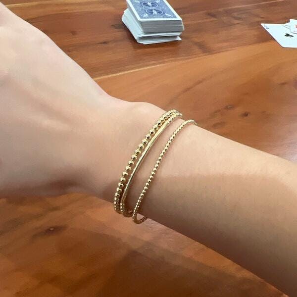 The 2mm beads catch light without competing for attention, making it the perfect foundation for your stack or a subtle solo piece that complements everything you wear.